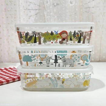 일본 이와키 신지가토 빨간망토 내열유리 반찬 이유식 밀폐용기(직사각)