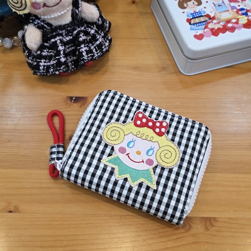 • 일본 컬리 컬렉션 이치고짱 캐릭터 와펜 체크 카드 지폐 동전 지퍼 반지갑
