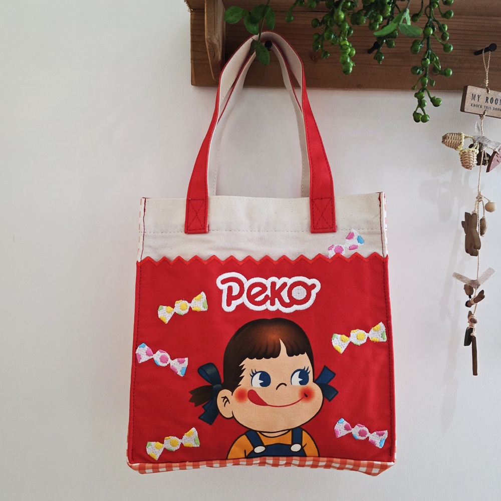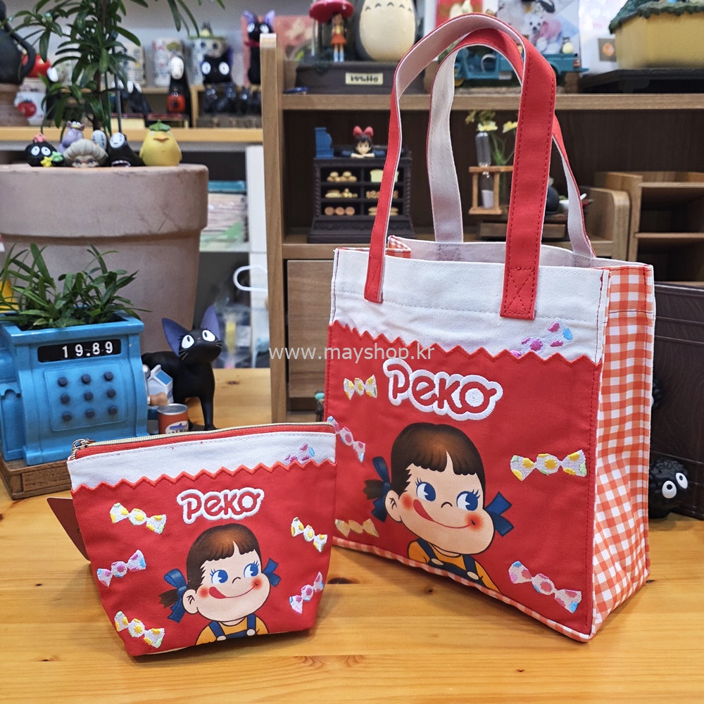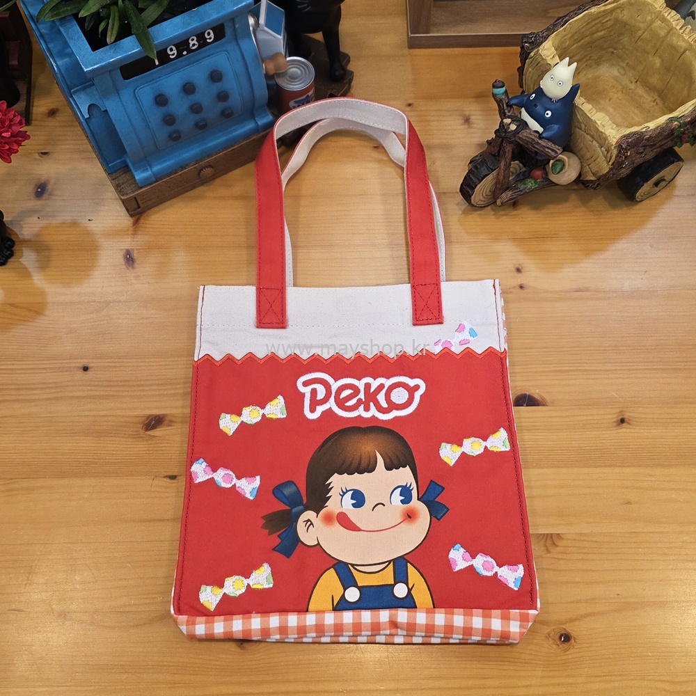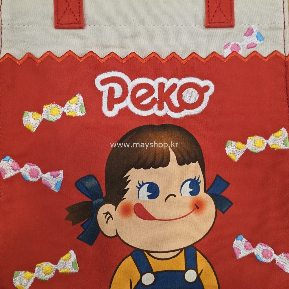 선명한 빨간색 바탕에 귀여운 페코짱이
