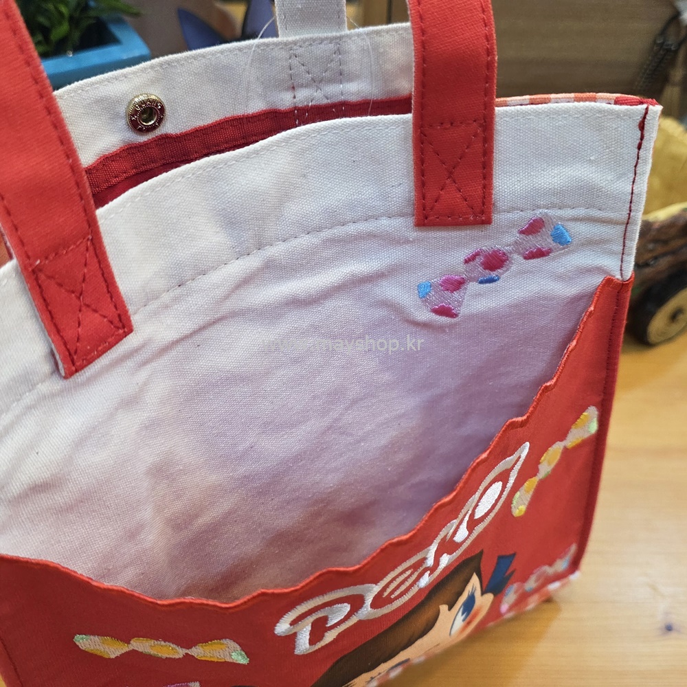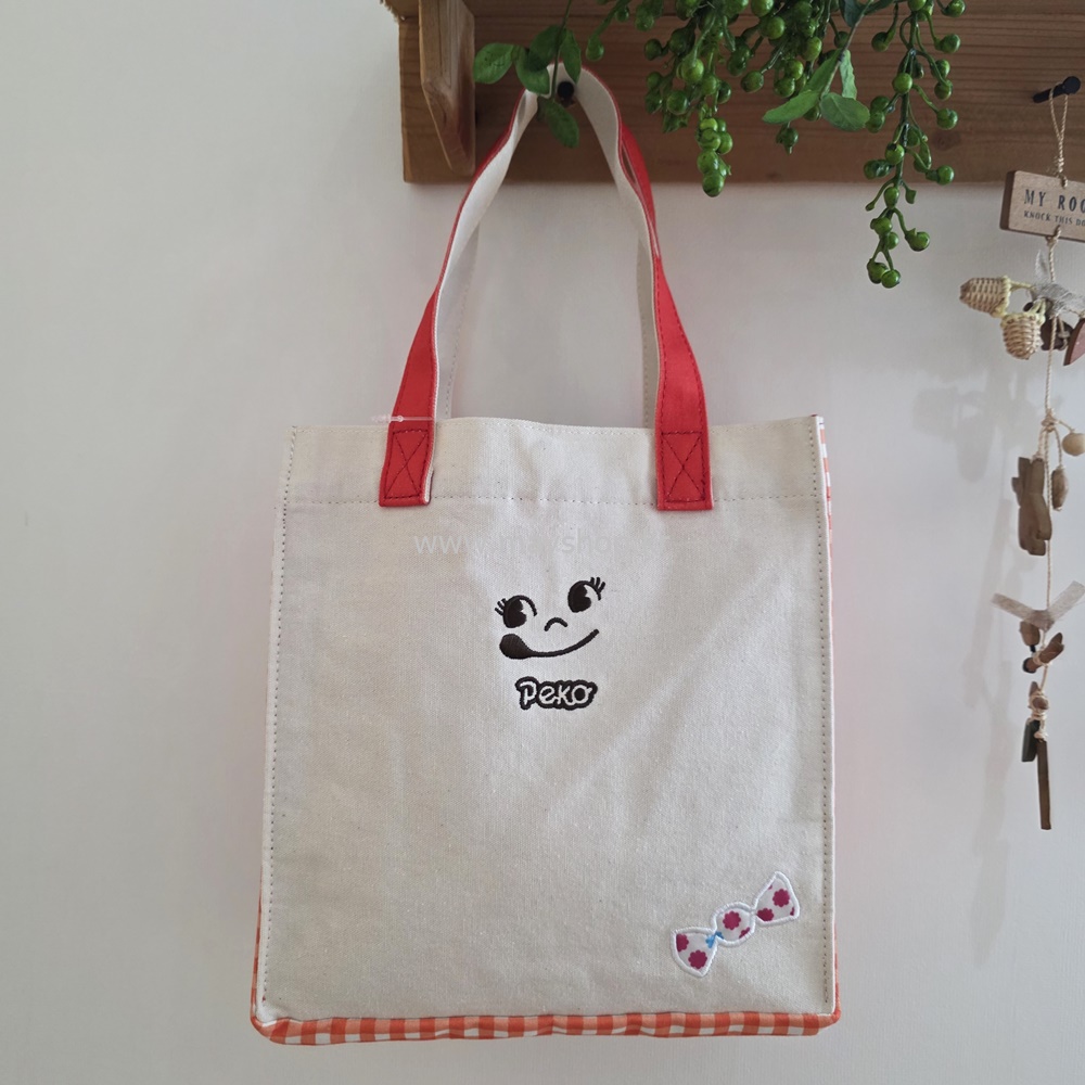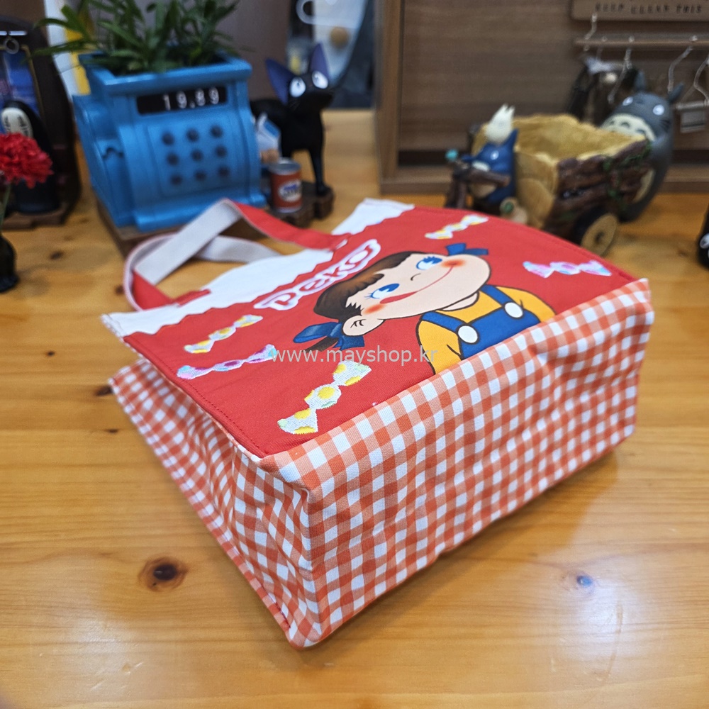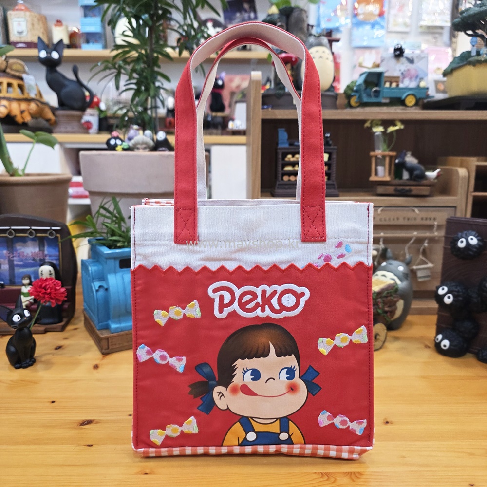 선명한 빨간색 바탕에 귀여운 페코짱이