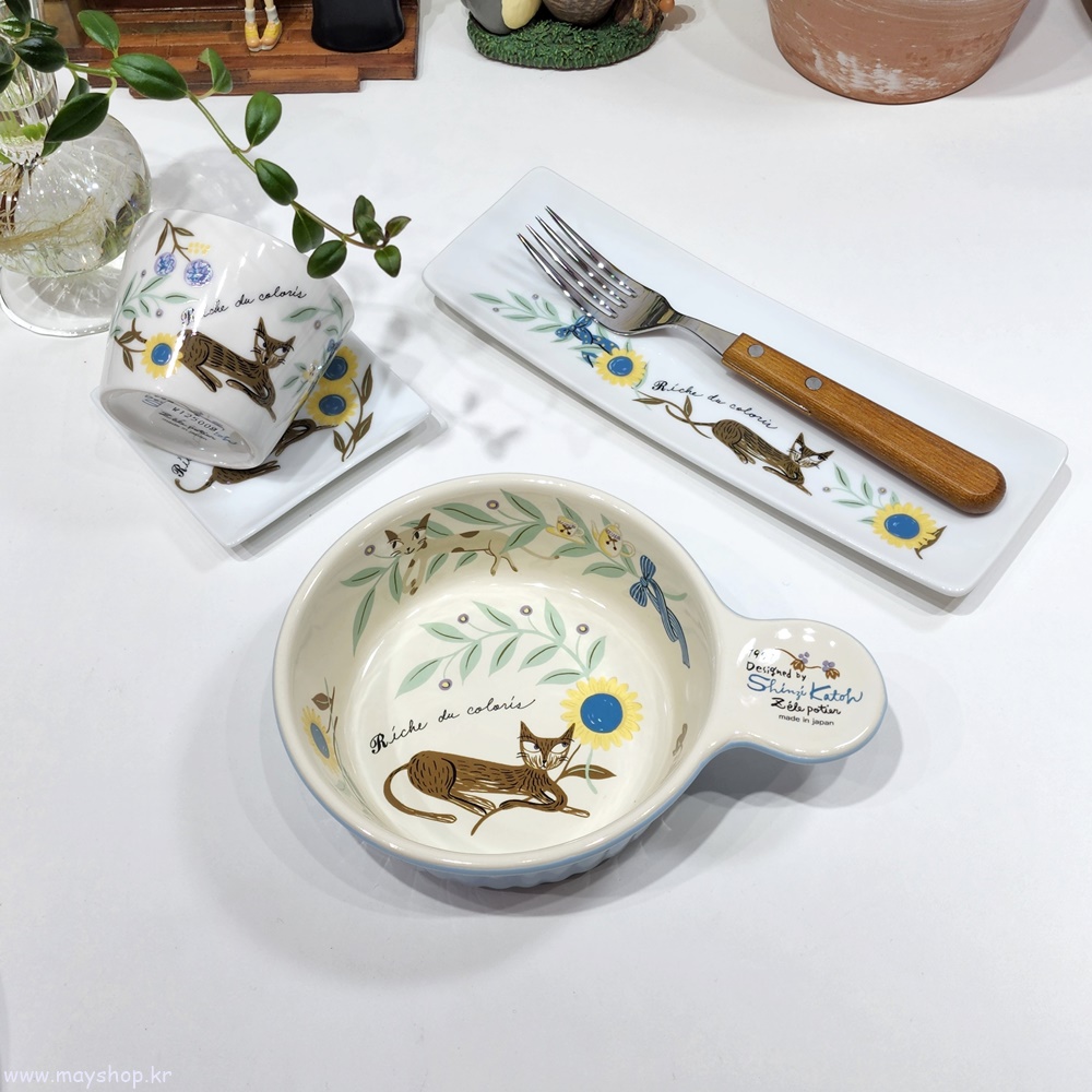 신지가토 RIC 고양이 캐릭터 오븐 그라탕 파스타 스파게티 접시 볼 그릇