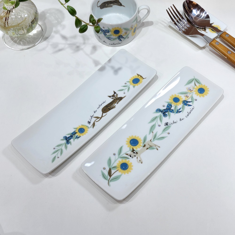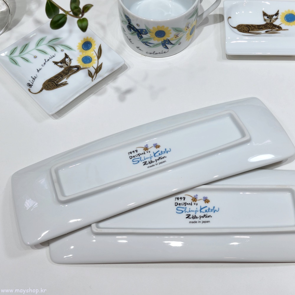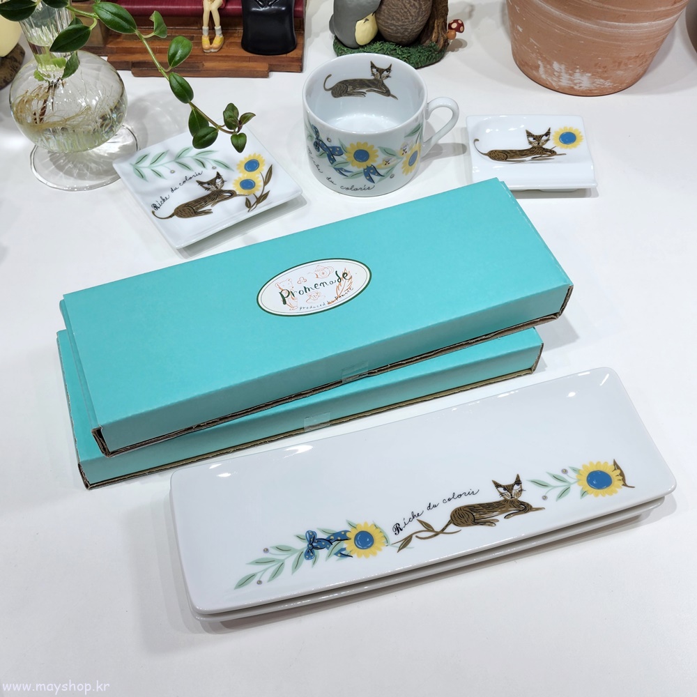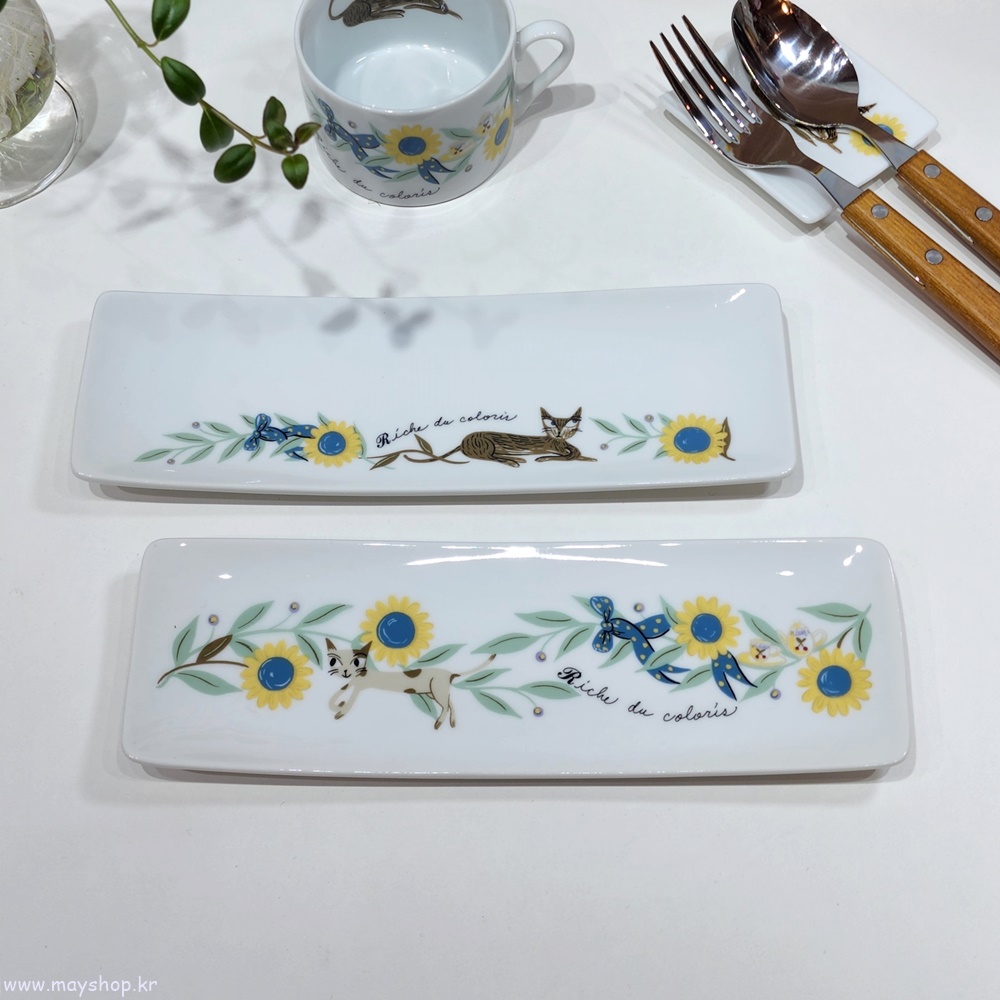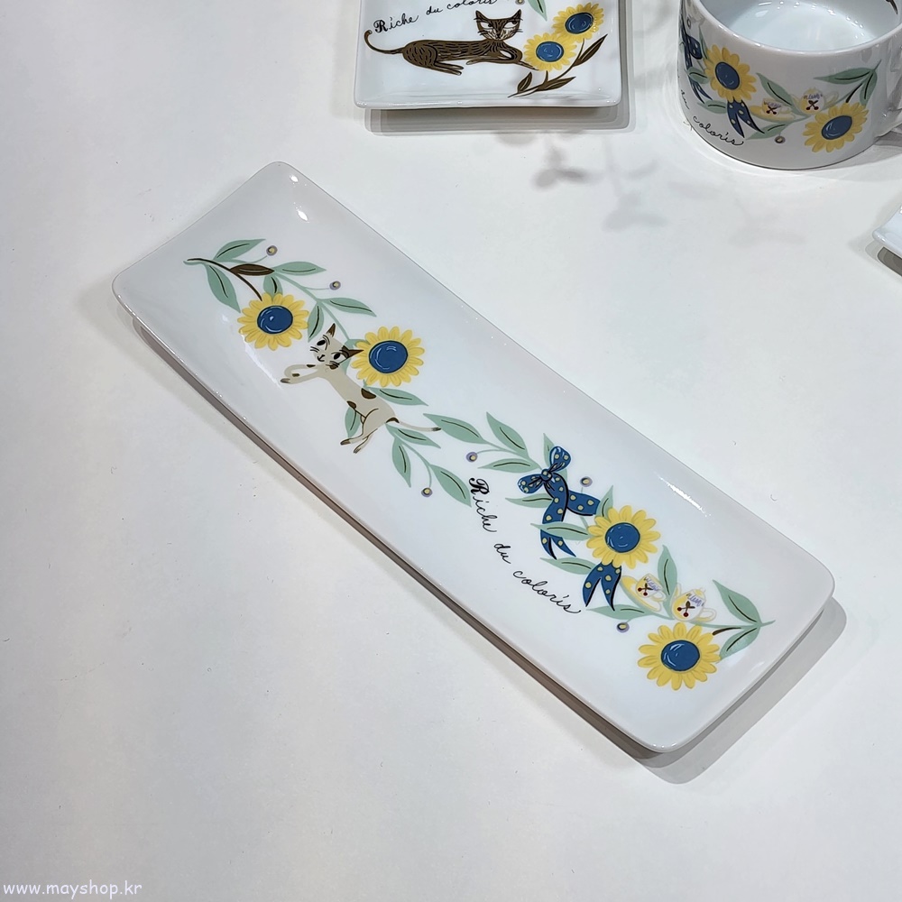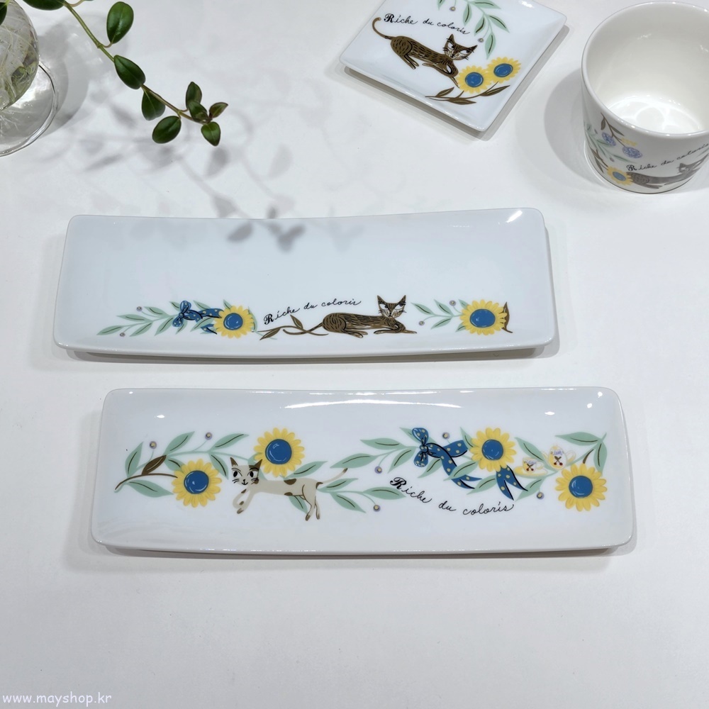 신지가토 RIC 고양이 캐릭터 사각 긴 생선 반찬 디저트 접시 선물 플레이트