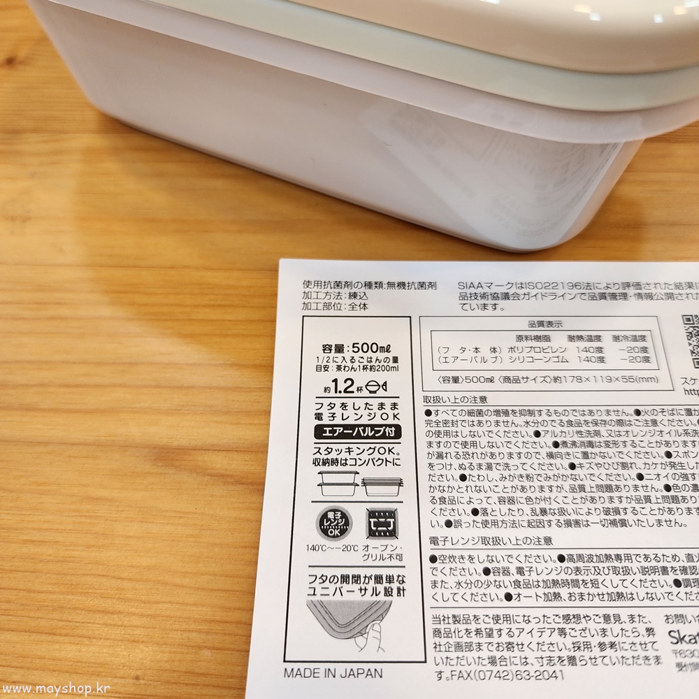 사이즈 : 약 17.8cm × 11.9cm × 5.5cm / 500ml